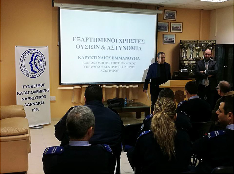 Στο πλαίσιο της συνεργασίας μας με το Σύνδεσμο Καταπολέμησης Ναρκωτικών Λάρνακας Κύπρου (ΣΥΚΑΝΑ) πραγματοποιήθηκε επίσκεψη (2) ατόμων από το Κ.Π. Ζωγράφου την περίοδο 11-14.01.2018 για υλοποίηση παρεμβάσεων πρόληψης σε διάφορους Φορείς.