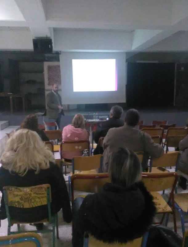 Ομιλία – συζήτηση σε γονείς. Σε συνεργασία με τη διεύθυνση του 2ου Γυμνάσιου Ηλιούπολης.Στο χώρο του 3ου Γυμνασίου Ηλιούπολης στις 11/11/2017 Με θέμα: «Συνεργασία Σχολείου Οικογένειας» (20 γονείς)
